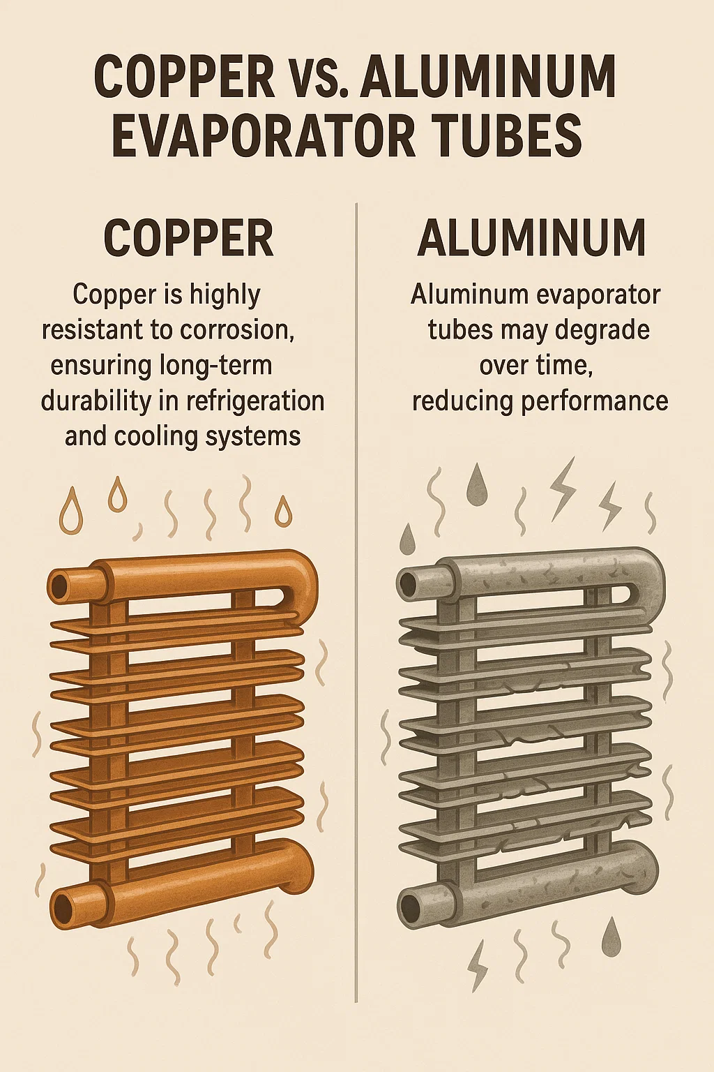 のために 産業および商業用途 信頼性と寿命が重要な場合、銅の耐腐食性と構造的完全性を維持する能力により、銅は蒸発器チューブとして優れた選択肢となります。