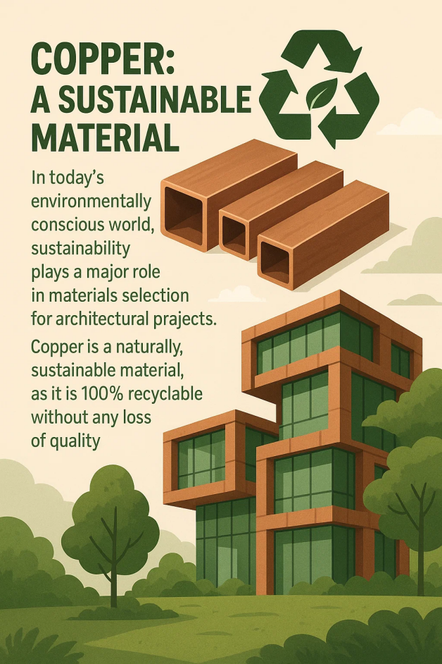 建築における銅角管の普及を促進する最も重要な要因の 1 つは、素材の自然な美しさです。銅は、あらゆるデザインに深みと洗練さを加える、豊かで温かみのある色調で知られています。によって指摘されているように、 銅開発協会 (CDA) 銅の「温かみのある赤みがかった色合い」は、比類のない美しさをもたらし、従来のより冷たい素材に対して独特のコントラストをもたらします。この温かみのある色調の銅は、外装ファサードとインテリアのアクセントの両方に人気の選択肢となっており、魅力的で豪華な空間の創造に貢献します。 CDAはまた、時間の経過とともに、明るい金属銅から緑がかった茶色の色調まで独特の緑青を発現する銅の能力は、その視覚的な魅力を高め、有機的で進化する層をデザインに追加するだけであることも強調しています。この自然な変化により、銅は時間の経過とともに変化し成熟するダイナミックな素材となり、現代建築で高く評価される時代を超越した美しさに貢献します。